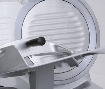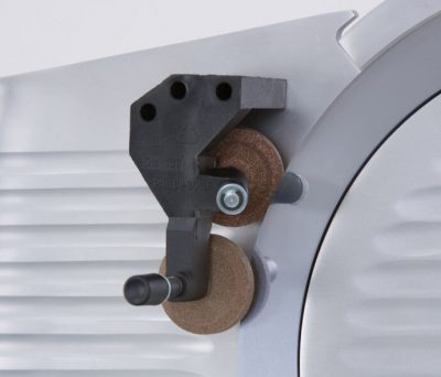- Albero portalama montato su doppio cuscinetto che rende l’affettatrice silenziosa.