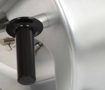 - Coprilama, piatto merci, paratia di regolazione fetta e anello coprilama con ossidazione anodica lucida, cosi’ da ottenere un prodotto igienicamente pulito e anticorrosivo.