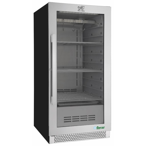 - vetrina frollatura carne, temperatura di esercizio cella +1°/+25°C, umidificatore, capacità 88lt, ad uso professionale CE con n.1 porta, monofase;