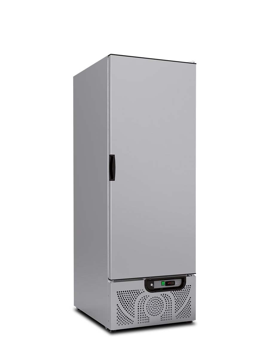 Armadio refrigerato ventilato mod. CHEF 600 PX , con evaporatore ventilato a roll bond con mobile in lamiera d’acciaio inox AISI 430 , Vasca in lamiera d’acciaio inox AISI 304, Porta cieca con guarnizione magnetica, serratura, sistema condensante maintenance free, termostato-termotermico elettronico con sbrinamento automatico, 4 rullini unidirezionali + 2 piedini regolabili, completo RESTYLING della gamba, Termostato elettronico “intelligente” con allarme di porta aperta e modalita’ ECO che garantisce ottimizzazione dei consumi e il massimo risparmio energetico