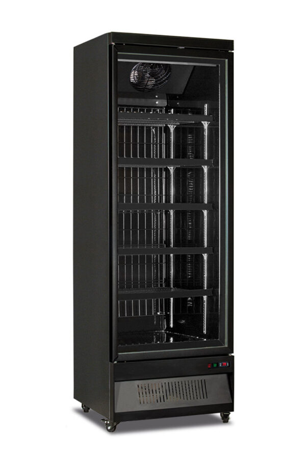 Il modello MR 75 TN1 WHT è un armadio frigo ventilato con temperatura regolabile da 0°C a +10°C, dotato di una porta battente con doppio vetro temperato che garantisce una perfetta visibilità dei prodotti esposti. Ha una struttura esterna in acciaio verniciato bianco e una superficie interna in alluminio sempre verniciato bianco, che conferiscono resistenza e igiene. Il gruppo refrigerante è incorporato e dispone di un termometro digitale e di un regolatore temperatura elettronico. Questo frigo murale ha inoltre un sistema di sbrinamento automatico a fermo compressore e di evaporazione automatica dell’acqua di condensa, che assicurano un funzionamento efficiente e una bassa manutenzione. Ha una capacità di 600 litri e all’interno sono presenti 5 griglie plastificate regolabili in altezza, con relativi set di aggancio. La porta ha una chiusura automatica e una guarnizione estraibile, che facilitano la pulizia, mentre lo spessore di isolamento di 4.5 cm, garantisce un ottimo risparmio energetico con una classe energetica B. All’interno è presente una luce interna a Led, che illumina i prodotti in modo uniforme e gradevole, mentre alla base sono presenti quattro ruote, che ne rendono facile lo spostamento. Le dimensioni esterne sono di 75 x 71 x (h) 199.7 cm, mentre le dimensioni interne sono di 66×54.5×156.9 cm. Il peso netto è di 130 Kg. Il tipo di gas refrigerante è R290, che ha un basso impatto ambientale, con una classe climatica 4, che indica una buona adattabilità a diverse condizioni ambientali.