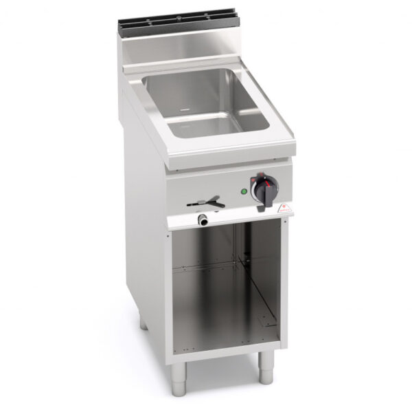 Piano di lavoro e pannelli frontali in acciaio inox AISI 304. Resistenze siliconiche poste all’esterno della vasca. Regolazione elettronica della potenza. Ampia vasca in acciaio inox AISI 304, realizzata da un unico stampo, con ampia raggiatura per favorire la pulizia.Numerose combinazioni possibili grazie alla possibilità di utilizzare 6 misure diverse di vaschette GastroNorm. Separatore 530 (SEP2) in dotazione. Rubinetto scarico frontale con sistema di sicurezza contro eventuali aperture accidentali. Spie di tensione. Piedini regolabili (versione con mobile).