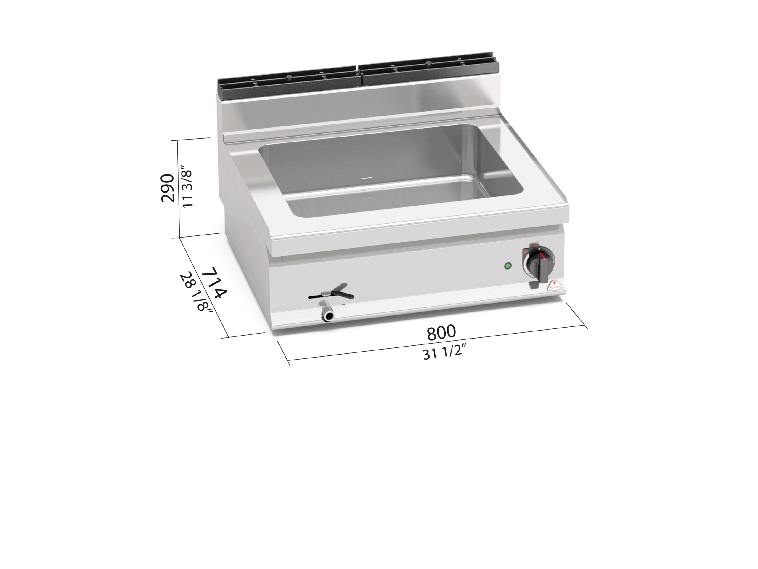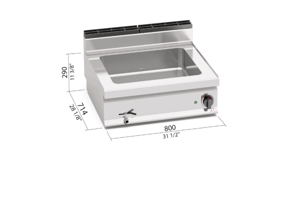 BAGNOMARIA ELETTRICO 2 X 1/1 GN TOP – SERIE 70 – Dim. 80×71,4x90h – 2,4 Kw