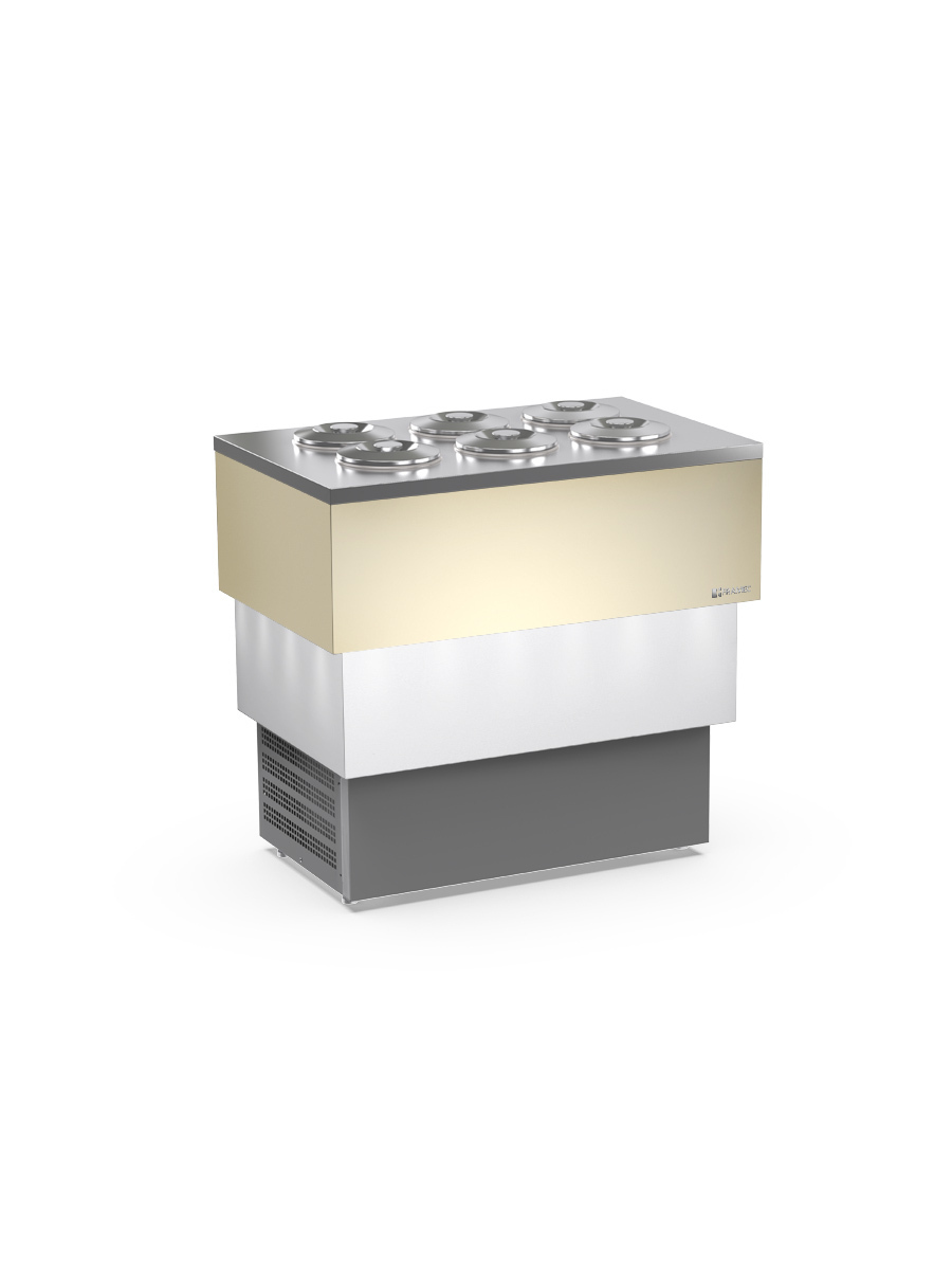 BANCO A POZZETTO – ESPOSITORE GELATO Mod. CARRARA CREAM 6 + 6 CARAPINE DA 7,5 L – Temp. -5°C/-20°C Dim. 104,5×66,1×97,6h