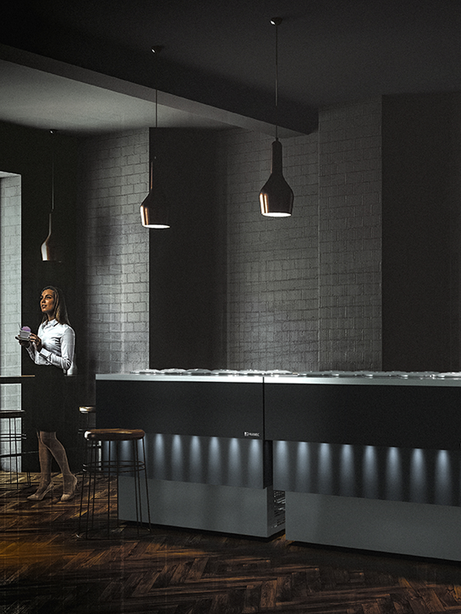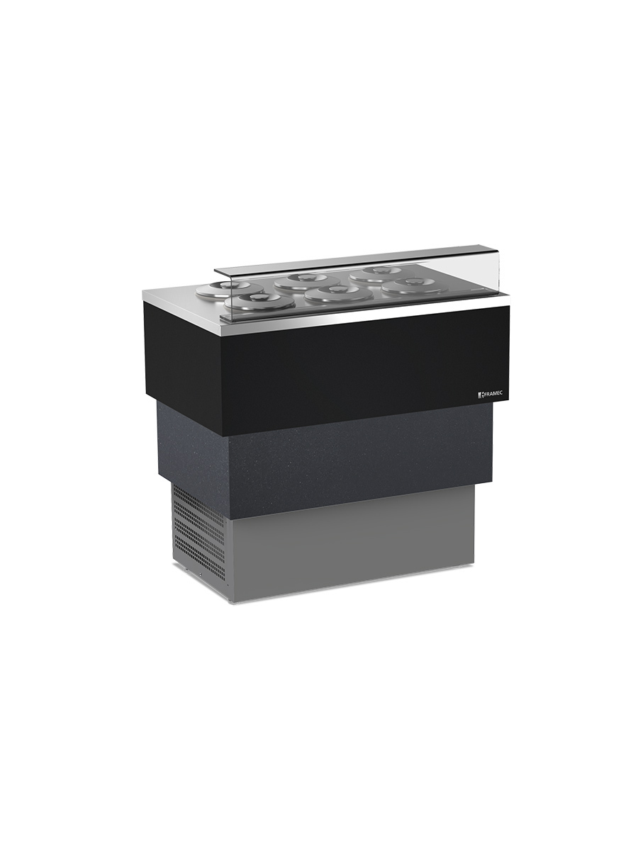 BANCO A POZZETTO – ESPOSITORE GELATO Mod. CARRARA DARK 4 + 4 CARAPINE DA 7,5 L – Temp. -5°C/-20°C Dim. 72×66,1×97,6h