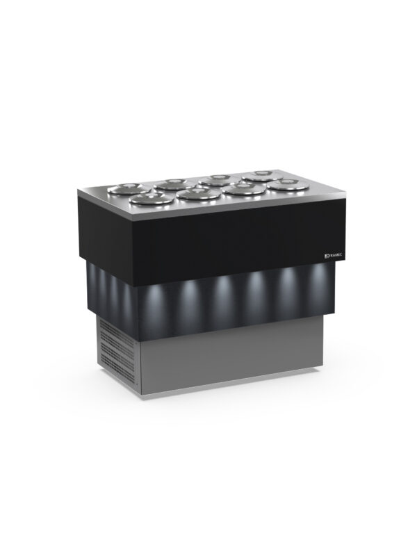 BANCO A POZZETTO – ESPOSITORE GELATO Mod. CARRARA DARK 8 + 8 CARAPINE DA 7,5 L – Temp. -5°C/-20°C Dim. 118×72,4×97,6h