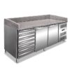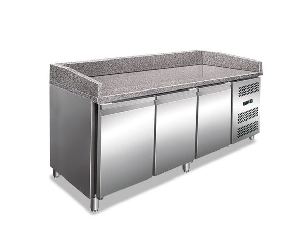 BANCO PIZZA REFRIGERATO POSITIVO VENTILATO 3 PORTE – MOD. PZ 3600 TN – Temp. +2°C/+8°C – Piano in granito – Dim. cm. L202xP80xh100