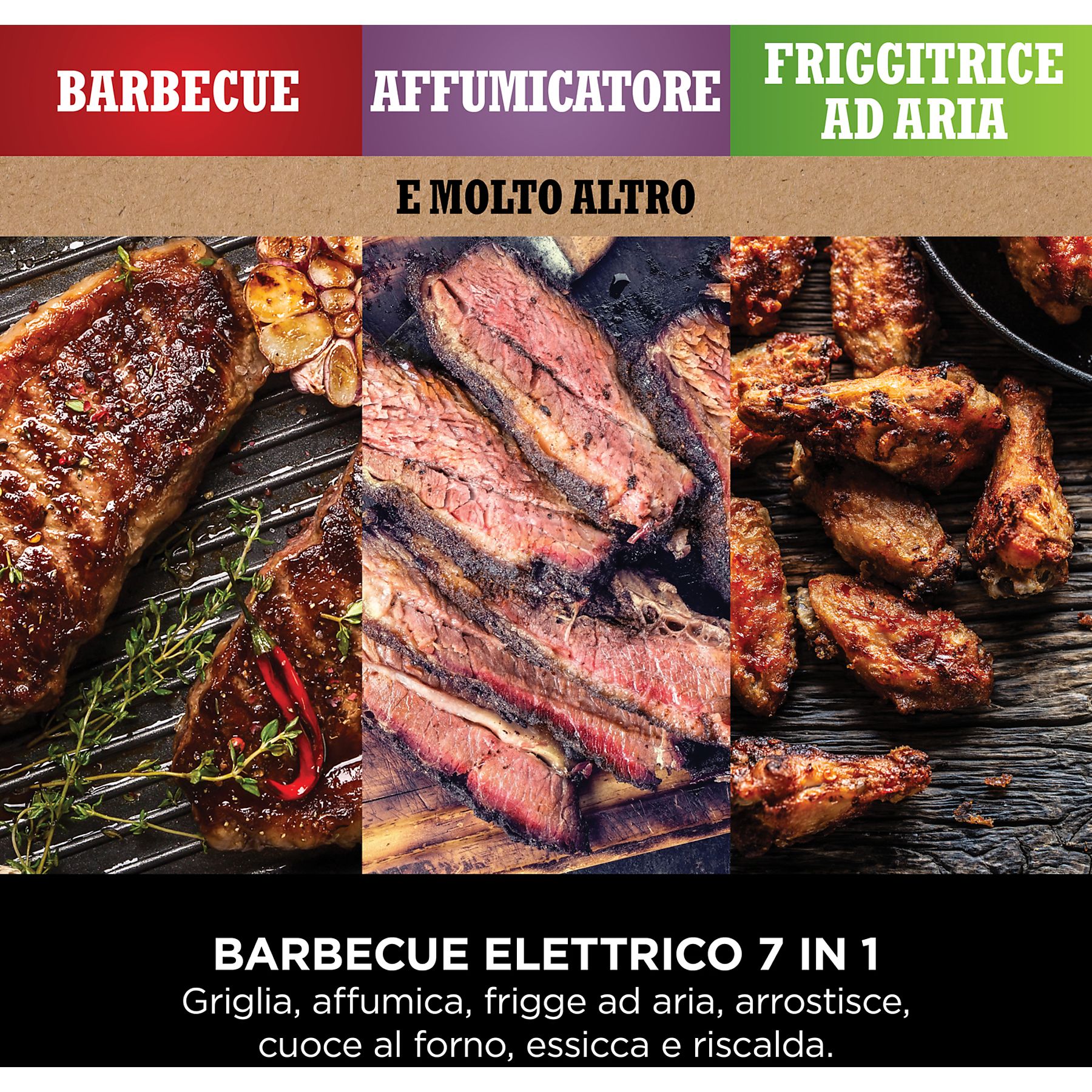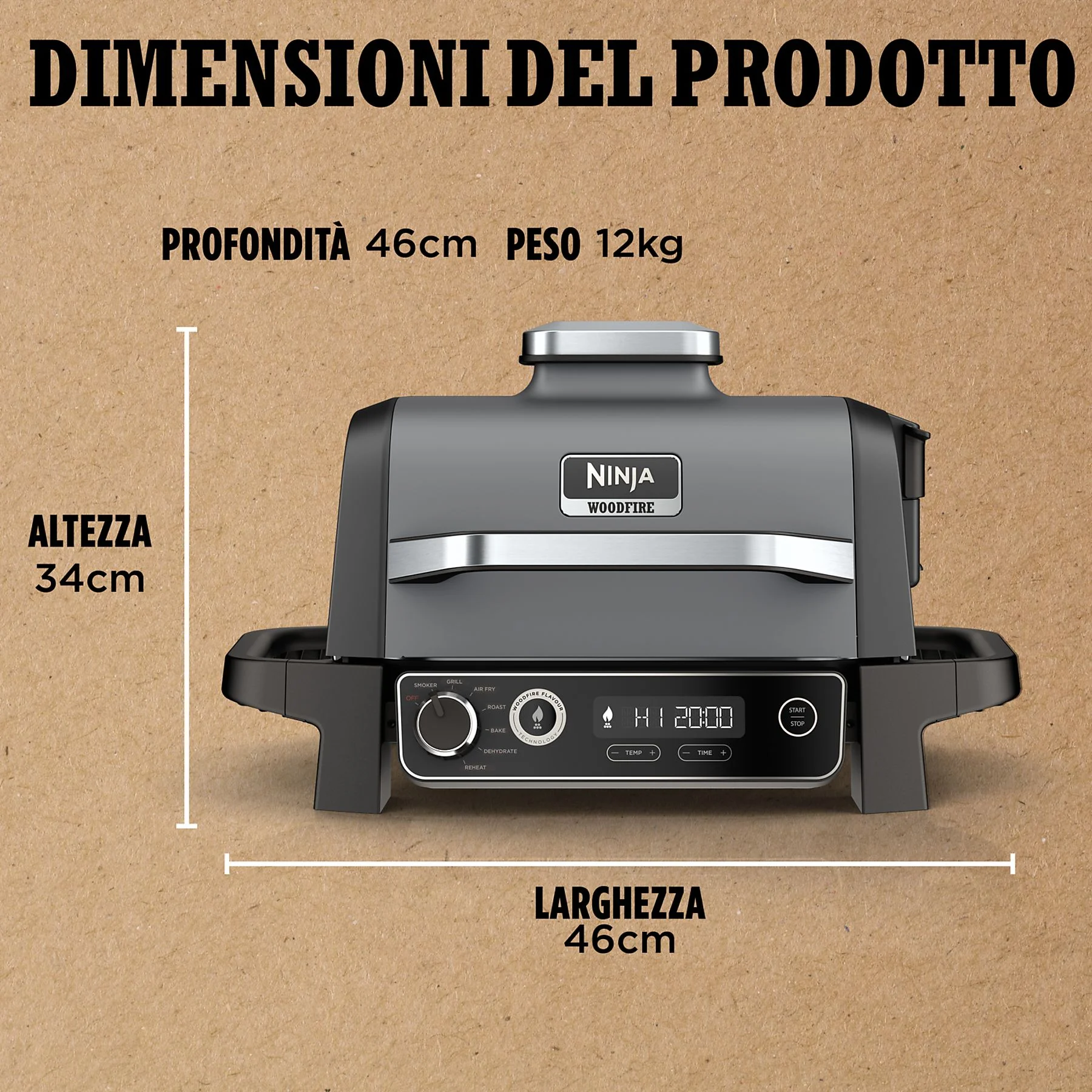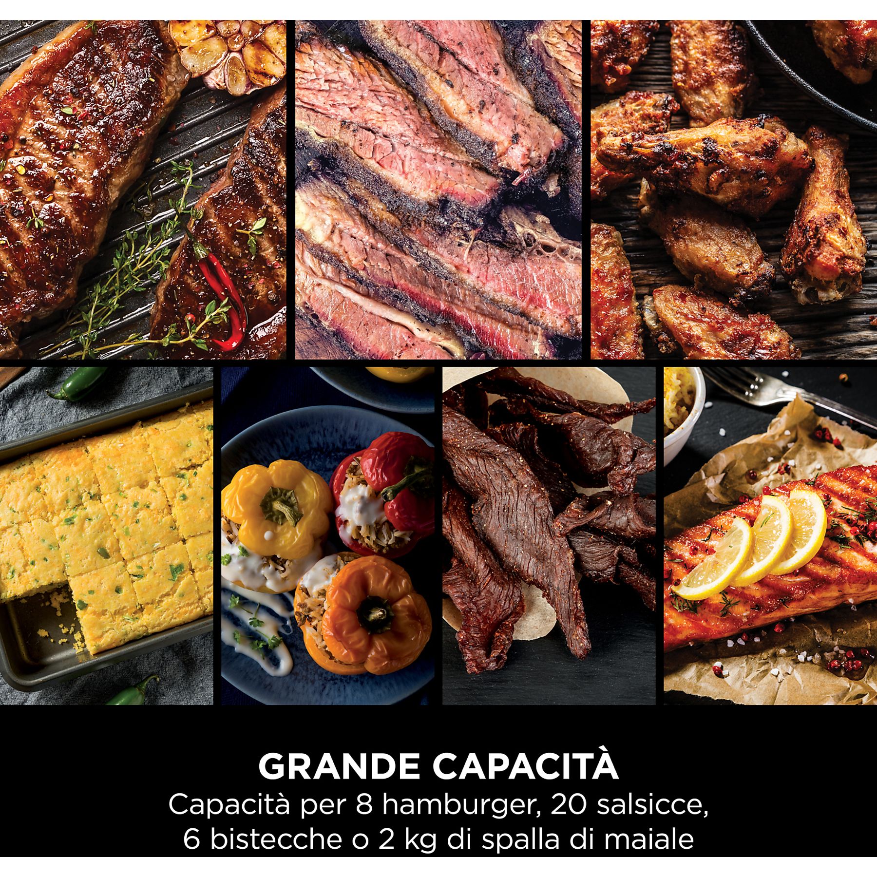 - 7 programmi/funzioni: Grill-Smoker-Air Fry-Roast-Bake-Reheat-Dehydrate