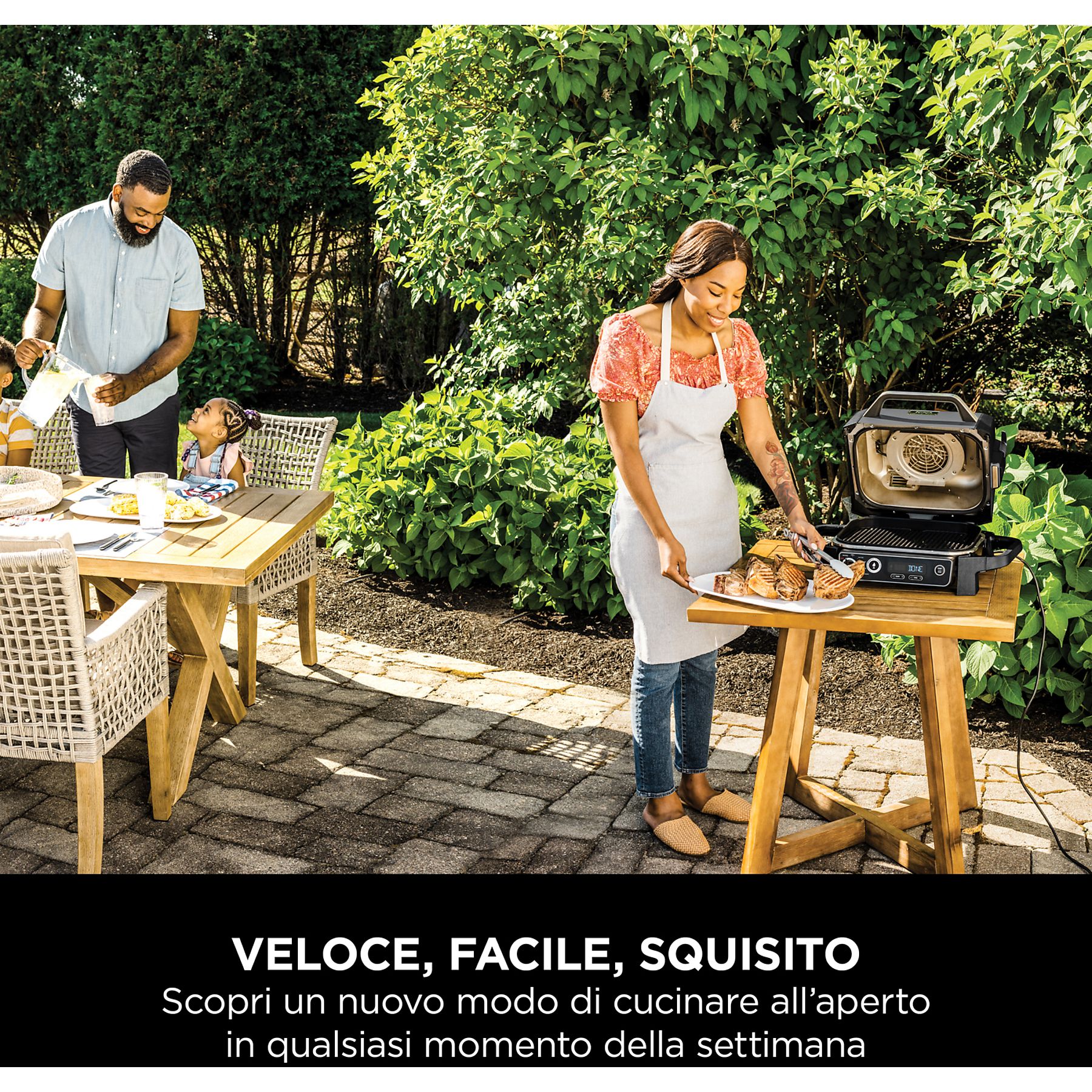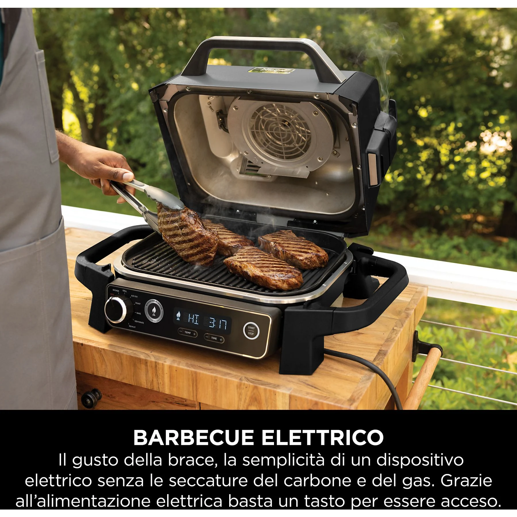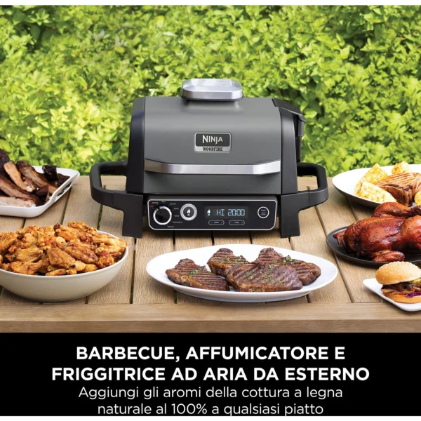 Scopri un nuovo modo di cucinare all’aperto con il Barbecue elettrico e affumicatore Ninja Woodfire. Griglia, affumica, friggi ad aria e molto altro con il vero sapore della cottura a legna, autentico al 100%.