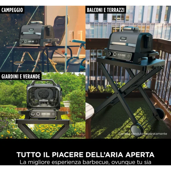 Ninja ha tutto ciò che ti occorre per un barbecue in grande stile. Completa il tuo Barbecue elettrico e affumicatore Ninja Woodfire con accessori specifici come la piastra liscia per scottare e saltare verdure o frutta, il cestello per frittura ad aria combinato per cuocere contemporaneamente pietanza e contorno, la custodia per barbecue resistente alle intemperie per una ulteriore protezione dagli agenti atmosferici, il carrello pieghevole per barbecue e tutto il pellet Woodfire che serve.