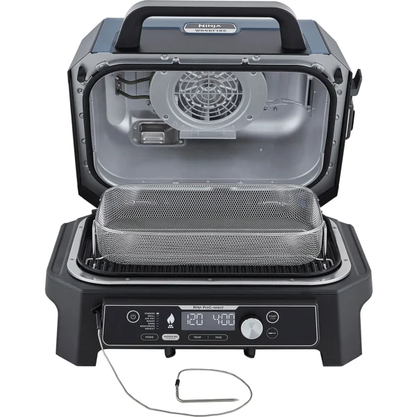 - Sonda integrata e 7 programmi: Cottura alla griglia, Affumicatura, Frittura ad aria, Cottura al forno, Cottura arrosto, Essiccazione, Riscaldamento