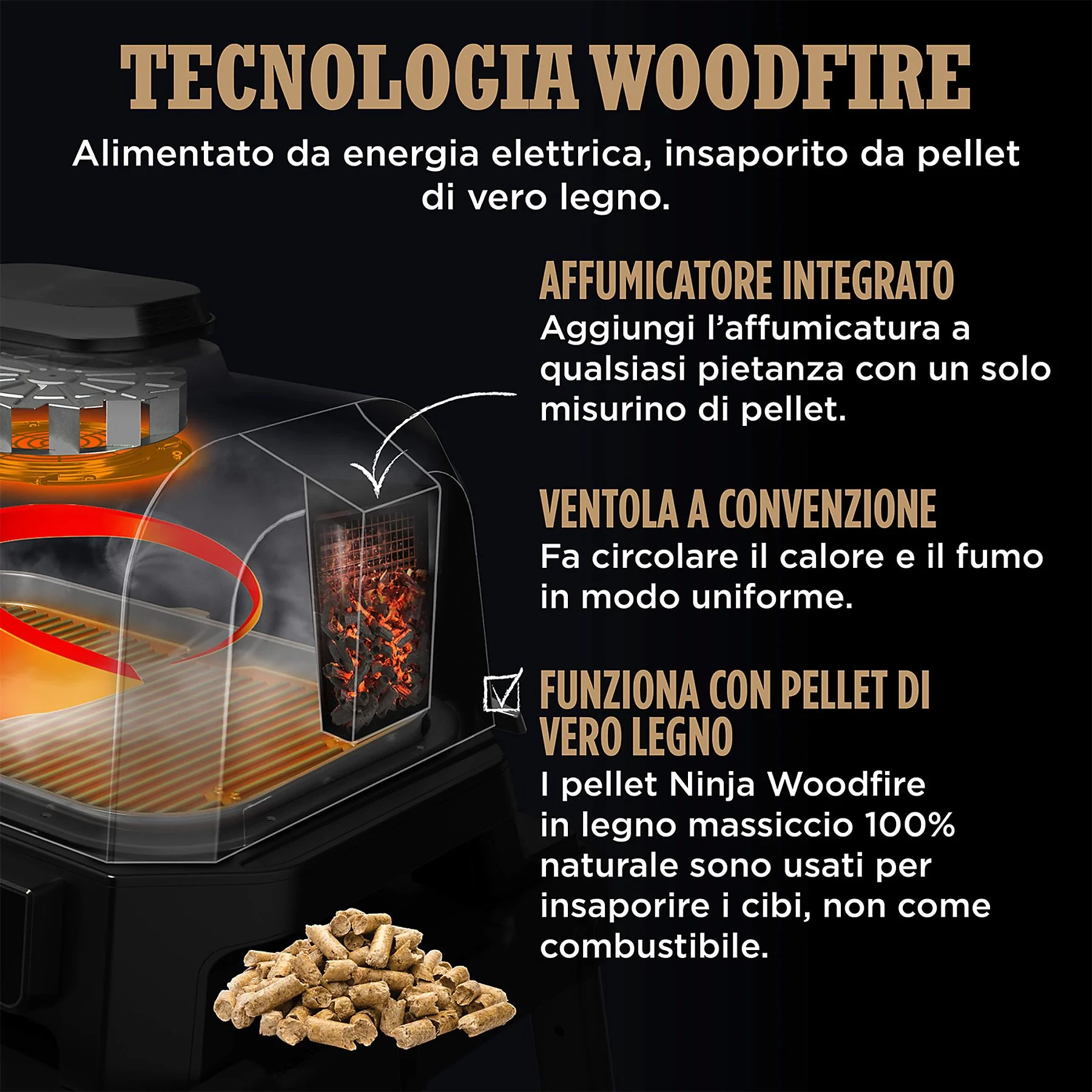 Tecnologia Woodfire: alimentato da energia elettrica, insaporito da pellet di vero legno.
