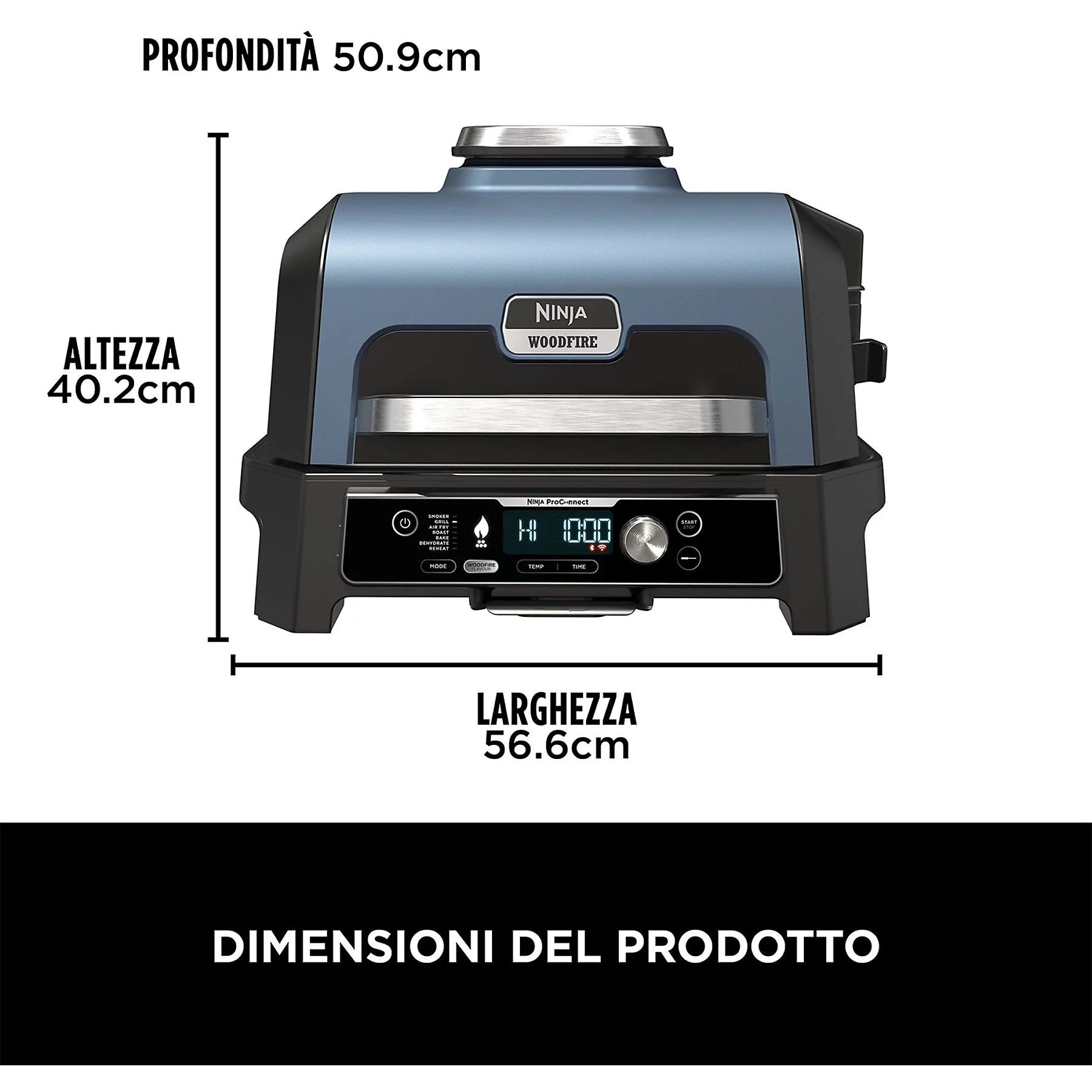 - Controllo da remoto: decidi tu tempo e temperatura di cottura, poi aggiungi il sapore dell’affumicato con la tecnologia Woodfire Flavour direttamente dall’app.