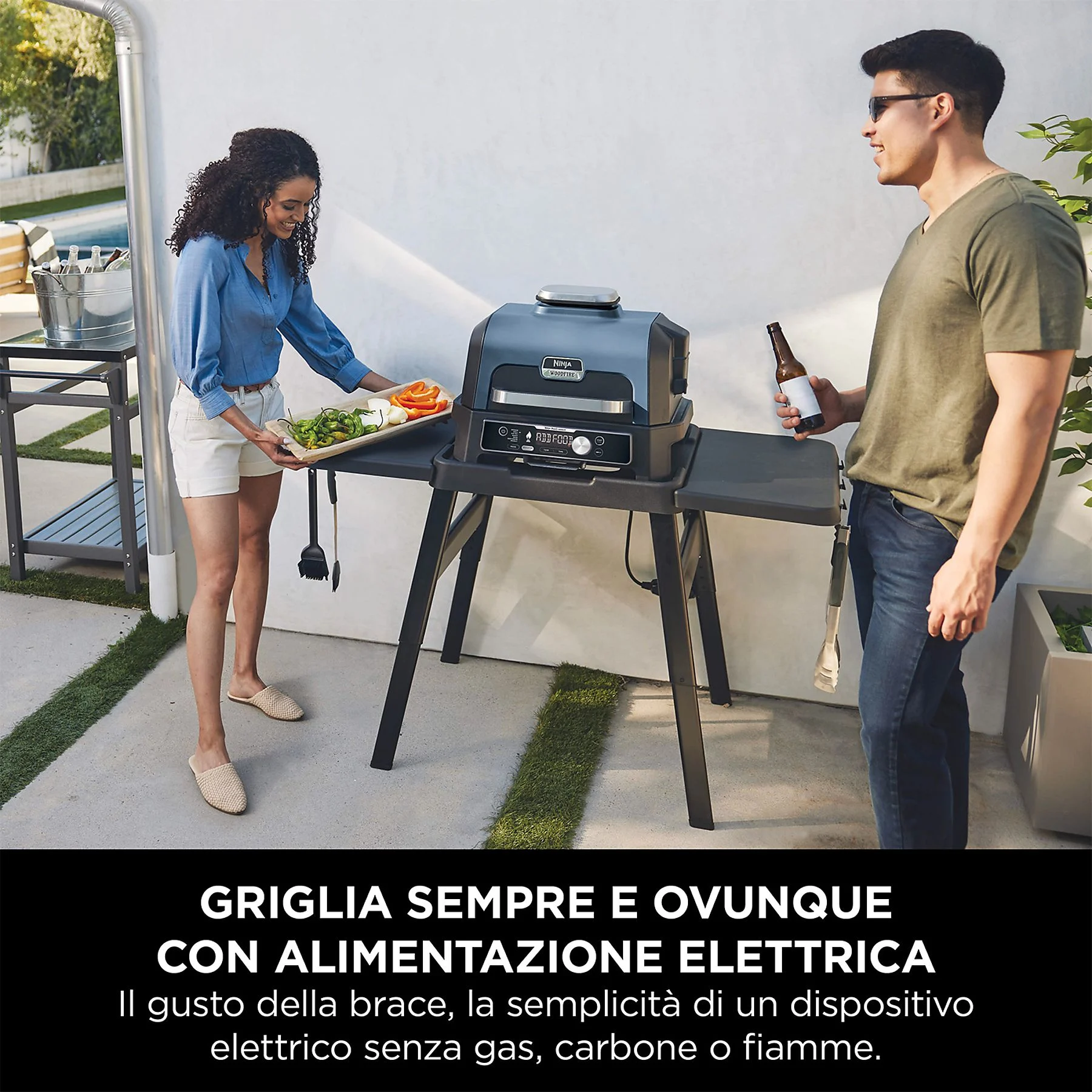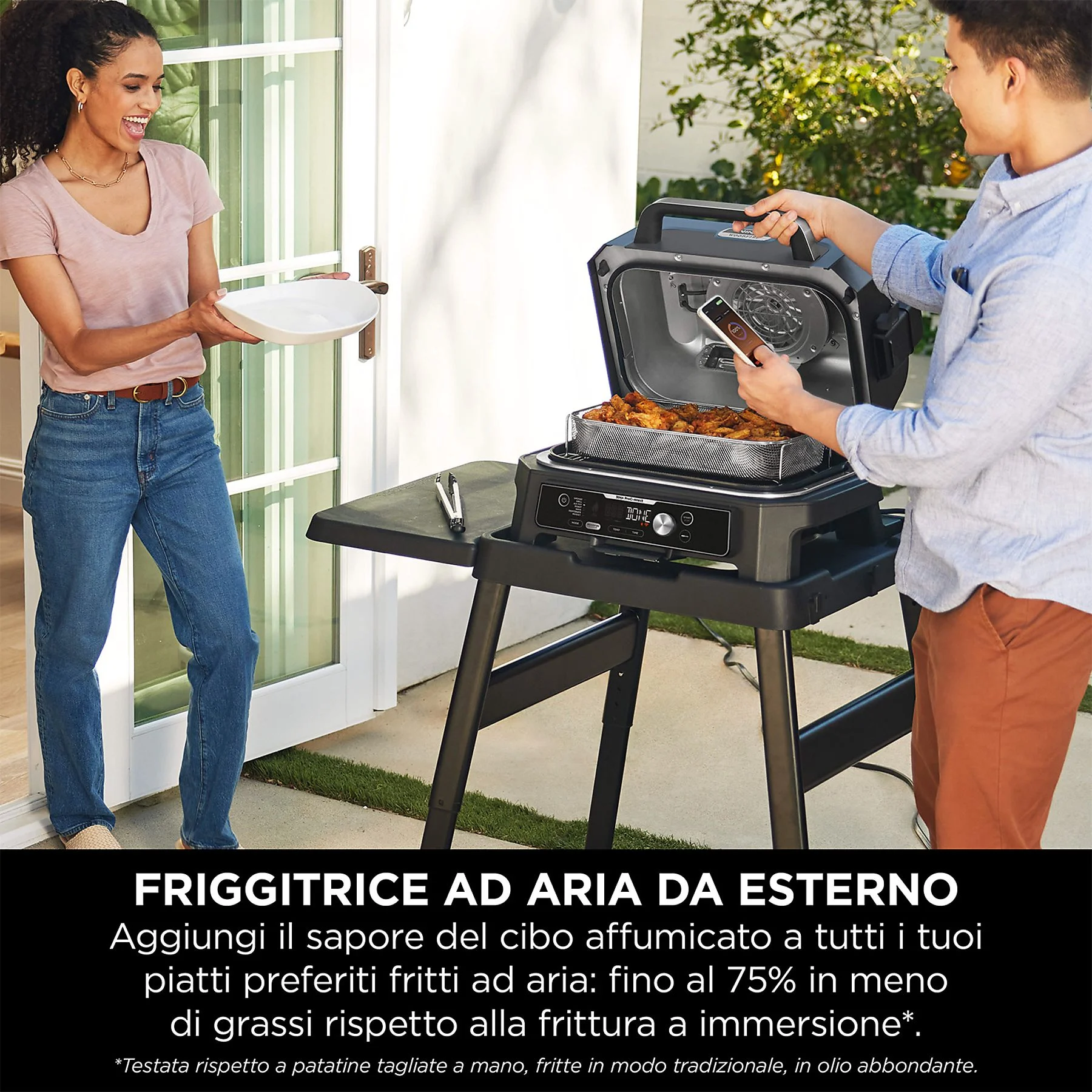 pensati per gli ambienti esterni più estremi, i materiali del barbecue Ninja Woodfire resistono alle intemperie e ne consentono l’utilizzo all’aperto tutto l’anno. Grado di resistenza all’acqua IPX4.