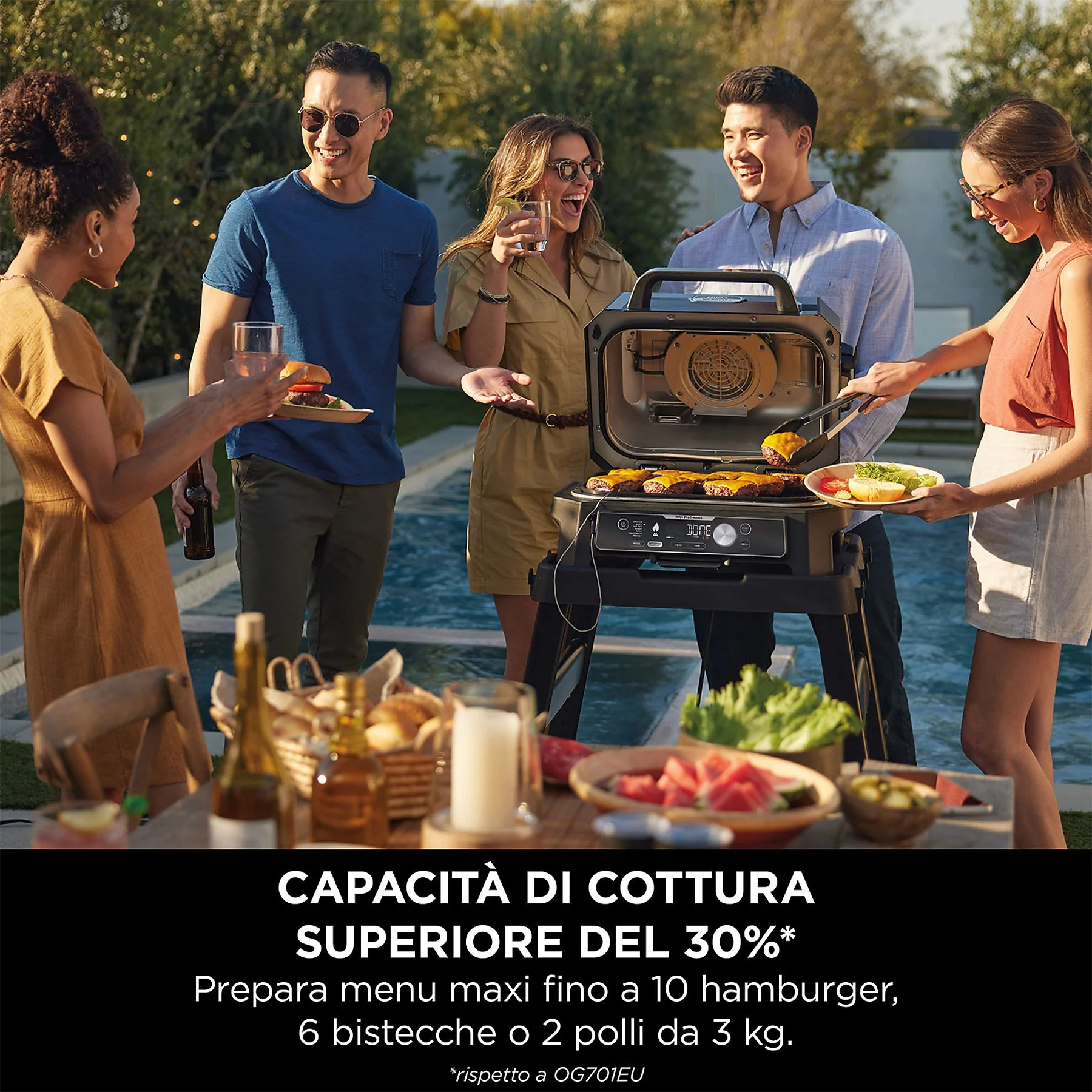 questo grande barbecue elettrico da esterno è dotato di uno spazio di cottura superiore del 30%*, perfetto per cuocere più cibi insieme.
