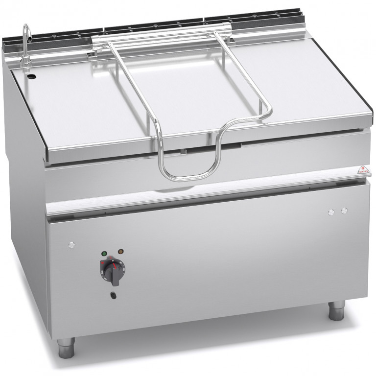 Costruzione interna ed esterna completamente in acciaio inox, parti esterne con finitura Scotch Brite. Coperchio fissato su cerniera auto-bilanciata in acciaio inox AISI 304, con maniglia di grande spessore in acciaio inox AISI 304.Vasca di cottura con pareti in acciaio inox AISI 304 spessore 20/10, con finitura antiaderente a microsfere in ceramica ed angoli completamente arrotondati. Fondo vasca radiante in acciaio spessore 10 mm, saldato esternamente. Rubinetto erogatore con collo di grande portata posto sul piano. Microinterruttore di sicurezza per l’arresto del funzionamento a vasca alzata. Termostato di sicurezza a riarmo manuale.Riscaldamento uniforme del fondo tramite resistenze elettriche corazzate in acciaio inox AISI 304 fissate sulla parte inferiore del fondo vasca e rivestite con materiale isolante. Erogazione della potenza controllata da interruttore e termostato (100°C – 300°C).