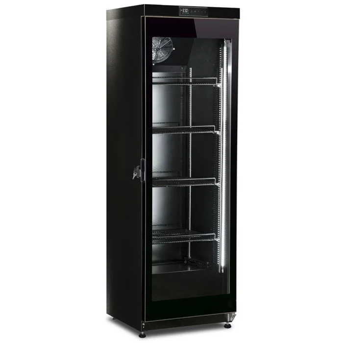 Il design total black elegante e moderno, abbinato alla struttura verticale, rende questa vetrina ideale per ambienti professionali che desiderano unire funzionalità, praticità ed estetica.