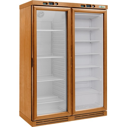 CANTINETTA – FRIGO VINI STATICO IN LEGNO 2 PORTE – Mod. KL2794N – Temp. +2+8°C/-18-22°C – Dim. cm L128xP61xh186