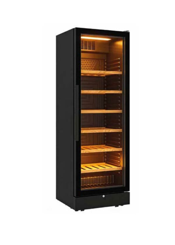 Grazie alla refrigerazione statica con agitatore, assicura una distribuzione uniforme del freddo e condizioni ottimali per mantenere il vino alla temperatura desiderata. Il termostato elettronico consente una regolazione precisa, mentre il termometro elettronico permette un controllo costante della temperatura interna.