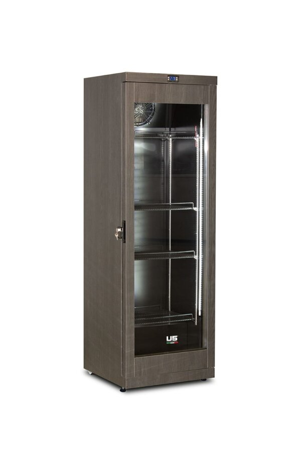Classica vetrina da vino mono temperatura rivestita in legno. CW 400 L utilizza gas ritenuti non dannosi per l’ambiente. Made in ITALY