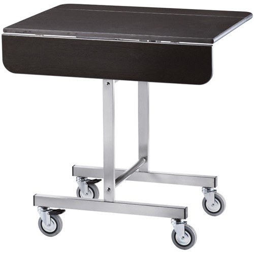 Carrelli per la colazione. Struttura portante in tubo di acciaio inox – ripiano con antine ribaltabili in nobilitato – ripiano di servizio ruotabile sino a 90°, con possibilità di incastrare i carrelli uno dentro l’altro per ridurre al minimo l’ingombro. Ruote multidirezionali di cui 2 con freno.