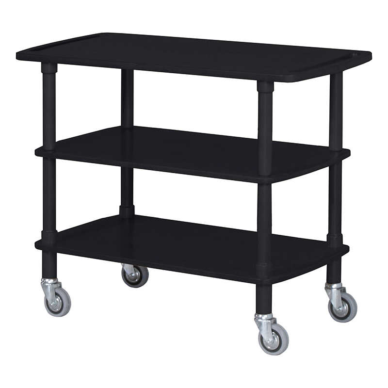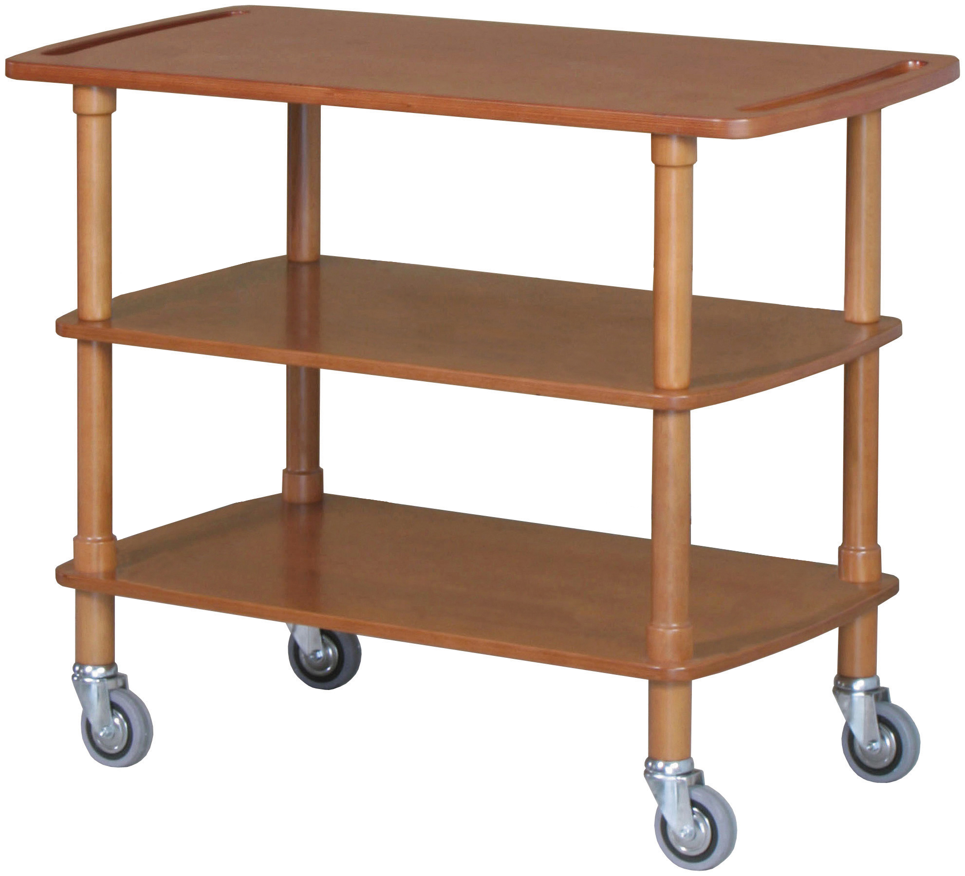 Carrello di servizio in legno – Struttura in legno massello – maniglie di spinta integrate nel piano superiore – ruote multidirezionali cromate ø 95 mm.