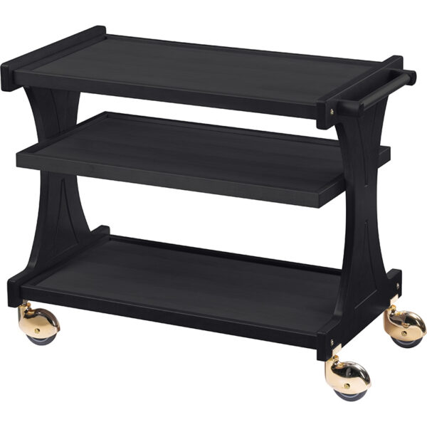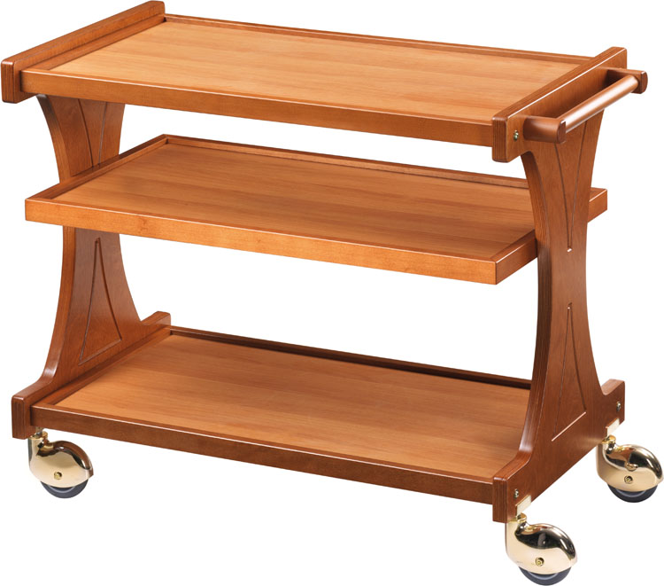 Carrello di servizio in legno – Struttura in legno multistrato di betulla – cornice perimetrale e maniglia in legno massello – ruote multidirezionali di serie cromate ø 100 mm
