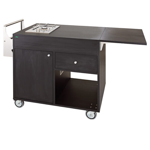 Carrello Flambè – 1 piastra – 1 fuoco – 1 sportello vano porta bombola da 3 Kg – 4 ruote con freno ø 100 mm