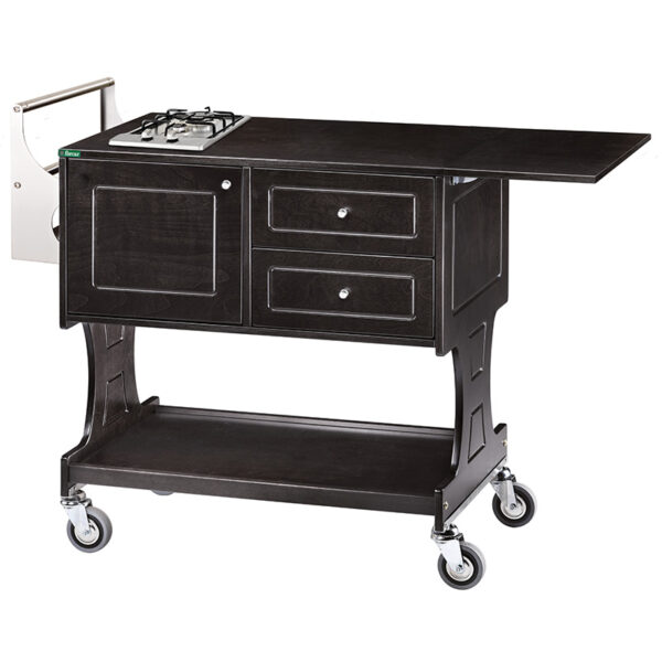 Carrello Flambè – 1 piastra – 2 fuochi – vano porta bombola da 2 kg – 2 ruote con freno ø 100 mm