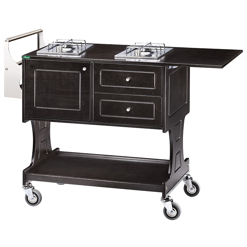 Carrello Flambè – 2 piastre – 2 fuochi – vano porta bombola da 2 kg – 2 ruote con freno ø 100 mm