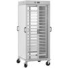 Carrelli portapiatti refrigerati. Struttura portante in acciaio plastificato – telaio in alluminio anodizzato – pannellatura in isomac spessore 25 mm con 4 sportelli apribili in plexiglass – griglie plastificate – maniglie laterali per conduzione carrello – ruote ø 125 mm di cui due con freno.