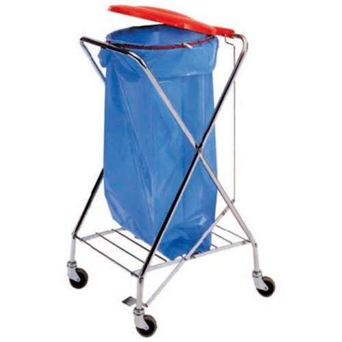| Descrizione | Carrello portasacco con struttura a X. Attacco rotondo – coperchio inplastica rotondo con aggancio. |