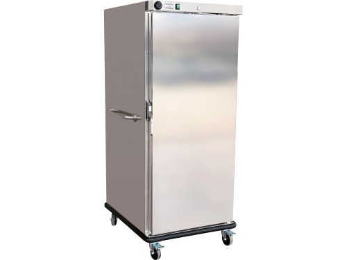 Carrelli portateglie GN1/1 e GN2/1 armadiati e riscaldati. Struttura ed interno in acciaio INOX AISI 304 – maniglie laterali per conduzione carrello – porte non reversibili – isolamento 60 mm – riscaldamento ventilato – termostato di tipo meccanico – mantiene 70°C di temperatura fino ad un’ora dallo spegnimento – ruote multidirezionali ø 125 mm di cui due con freno.