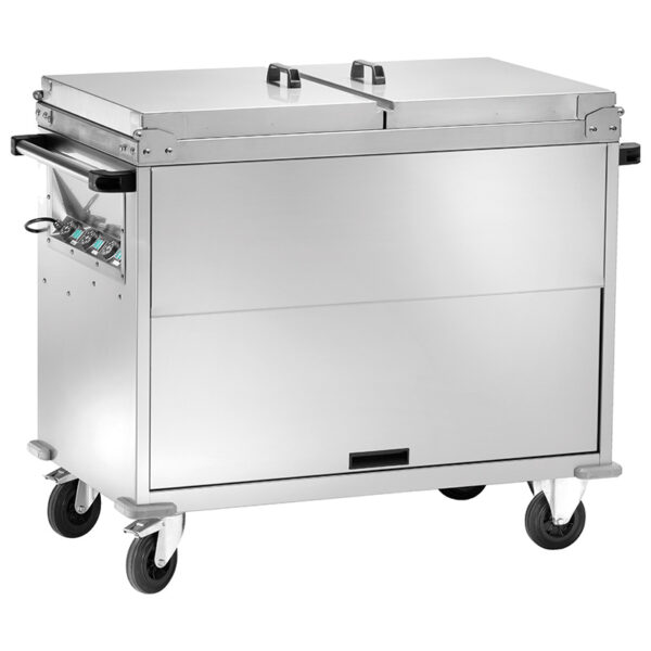 Carrello termico a bagnomaria armadiato in acciaio inox – Temp. +30°C/+90°C – Dim. cm 96x68x102h