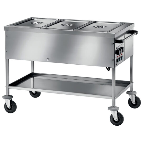 Carrello termico a bagnomaria in acciaio inox – Temp. +30°C/+90°C – Dim. cm 117x67x85h