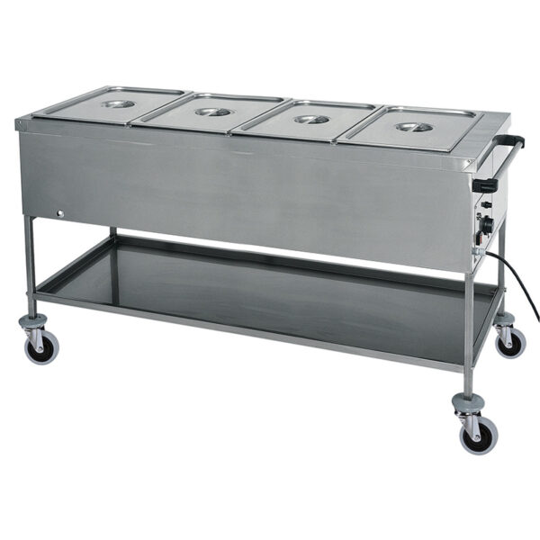 Carrello termico a bagnomaria in acciaio inox – Temp. +30°C/+90°C – Dim. cm 148x65x85h
