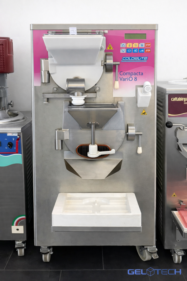 La Coldelite Compacta VariO 8 è una macchina combinata professionale per gelateria che consente di completare l’intero ciclo di produzione del gelato artigianale con un’unica unità: pastorizzazione e mantecazione.