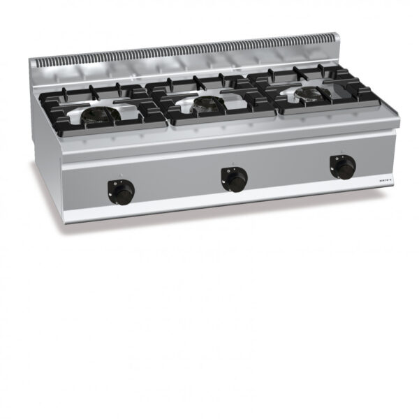 I bruciatori in ghisa nichelata, garantiti a vita, sono disponibili a singola e doppia corona ad alta potenza, per offrire massima flessibilità e prestazioni elevate in ogni tipo di preparazione. Ogni bruciatore è dotato di rubinetto valvolato con termocoppia di sicurezza e spia pilota, per un utilizzo sicuro e affidabile.