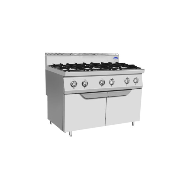 CUCINA A GAS 6 FUOCHI CON ANTE – SERIE 70 – Dim. cm. L120xP70xh108,5 – 6 x 7 kW