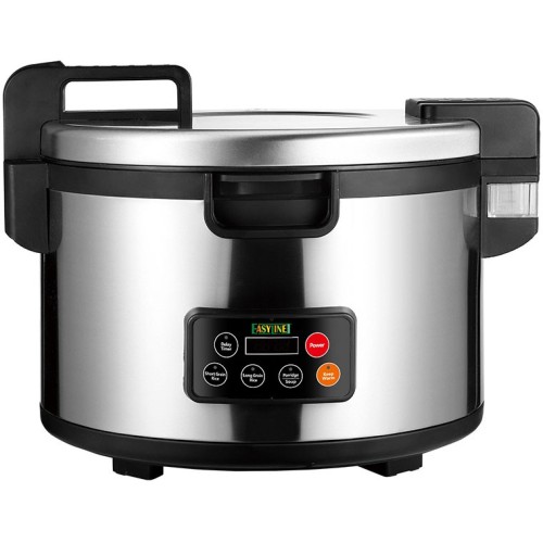 Macchine cuoci riso. Struttura e interno in acciaio inox – in dotazione cucchiaio e misurino da 180 ml. Funzione di scelta per la cottura di diversi tipi di riso “Short Grain Rice“ o “Long Grain Rice”. Possibilità di cuocere zuppe/porridge e di utilizzare il tasto “Delay Timer” fino ad un massimo di 4 ore. Funzione “Warm” per il mantenimento della temperatura. Capacità fino a 45 porzioni di riso.