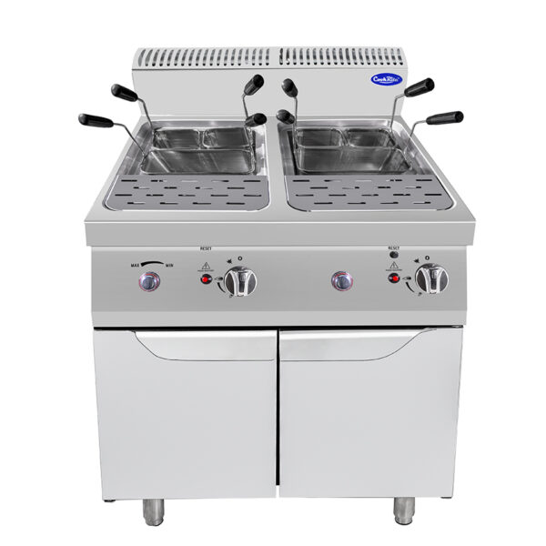 CUOCIPASTA A GAS DOPPIA VASCA 24+24 LITRI SU VANO – SERIE 70 – Dim. cm. L80xP70xh108,5 – 2 x 10 Kw