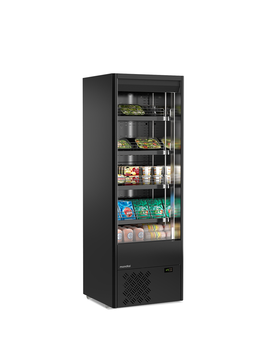 Il Murales 7 W Mondial è un espositore murale refrigerato ventilato compatto, progettato per garantire la conservazione ottimale e la massima visibilità dei prodotti freschi. La refrigerazione ventilata assicura una distribuzione uniforme del freddo, mantenendo una temperatura stabile tra +0°C e +4°C, ideale per bevande, latticini e alimenti confezionati.