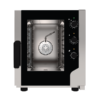 Forno a gas combinato convezione vapore per 6 teglie 60 x 40 cm con pannello digitale touch screen a colori. Manopola con funzione scroll e push. Sonda al cuore multipunto di serie. 10 fasi di cottura programmabili. Accensione programmabile. Possibilità di comandare cappa, lievitatore e mantenitore (accessori optional). Gestione rapida delle ricette di utilizzo più frequenti. 500 ricette programmabili, 40 memorizzate.