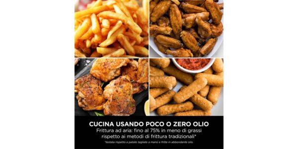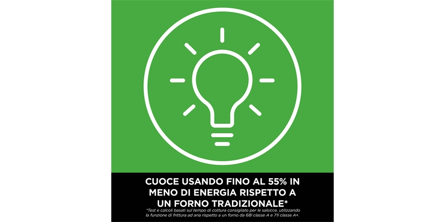 Inoltre, la friggitrice ad aria ti fa risparmiare sulla bolletta poiché consuma meno energia rispetto ai forni tradizionali.