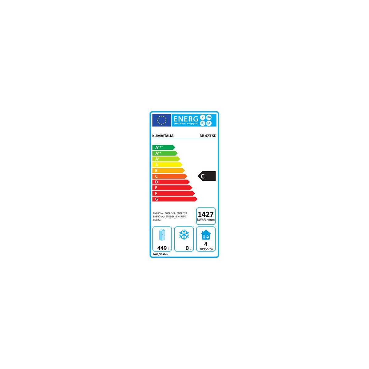 Il modello BB 423 SD è un frigo retro banco dotato di 3 porte cieche e 1 cassettiera con 2 cassetti refrigerati a 0°C/+10°C, perfetti per tenere al fresco bibite, cibi e prodotti freschi. Il frigo ha una capacità di 586 litri con una struttura esterna in lamiera preverniciata con trattamento anticorrosione, che lo rende resistente e duraturo, mentre internamente è in acciaio inox, facile da igienizzare e mantenere pulito. Il frigo è dotato di un termometro digitale e di un regolatore di temperatura elettronico, che ti consentono di regolare la temperatura con precisione e semplicità ed uno spessore di isolamento di 40 mm, che garantisce una buona conservazione del freddo. Il frigo ha inoltre un sistema di sbrinamento a fermo compressore, che previene la formazione di ghiaccio e neve sulle pareti interne. Internamente è illuminato da 2 led orizzontali, che creano un’atmosfera piacevole e ti facilitano la visione del contenuto. Ha la chiusura automatica delle porte e la chiave e la serratura, per una maggiore sicurezza e comodità, mentre all’interno sono presenti 6 mensole di dimensioni 430 x 395 mm e 2 mensole di dimensioni 335 x 95 mm, per poter organizzare i tuoi prodotti al meglio. Alla base del frigo ci sono 6 piedini, per adattarsi a qualsiasi superficie. Le dimensioni esterne sono 254,2 x 51,3 x (h)86 cm e delle dimensioni interne di 216,2 x 41,5 x 76 cm, mentre il peso netto è di 123 kg.