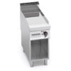Una gamma completa di fry top a gas ed elettrici con piastra singola o doppia, in acciaio o al cromo, per permettere la cottura “per contatto” di qualsiasi tipo di cibo, anche della pietanza più delicata. Il sistema di distribuzione uniforme della temperatura garantisce cotture ottimali senza dispersione di calore, con conseguente vantaggio in termini di risparmio energetico e miglioramento dell’ambiente di lavoro. I residui di cottura vengono convogliati nell’apposita canaletta e raccolti in un ampio cassetto attraverso il foro di scarico di grandi dimensioni. Optional il tappo in teflon resistente alle alte temperature.