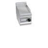 Fry top elettrico professionale con piastra rigata in acciaio satinato, progettato per garantire elevate prestazioni, marcatura perfetta delle carni e gestione ottimale dei grassi durante il servizio.