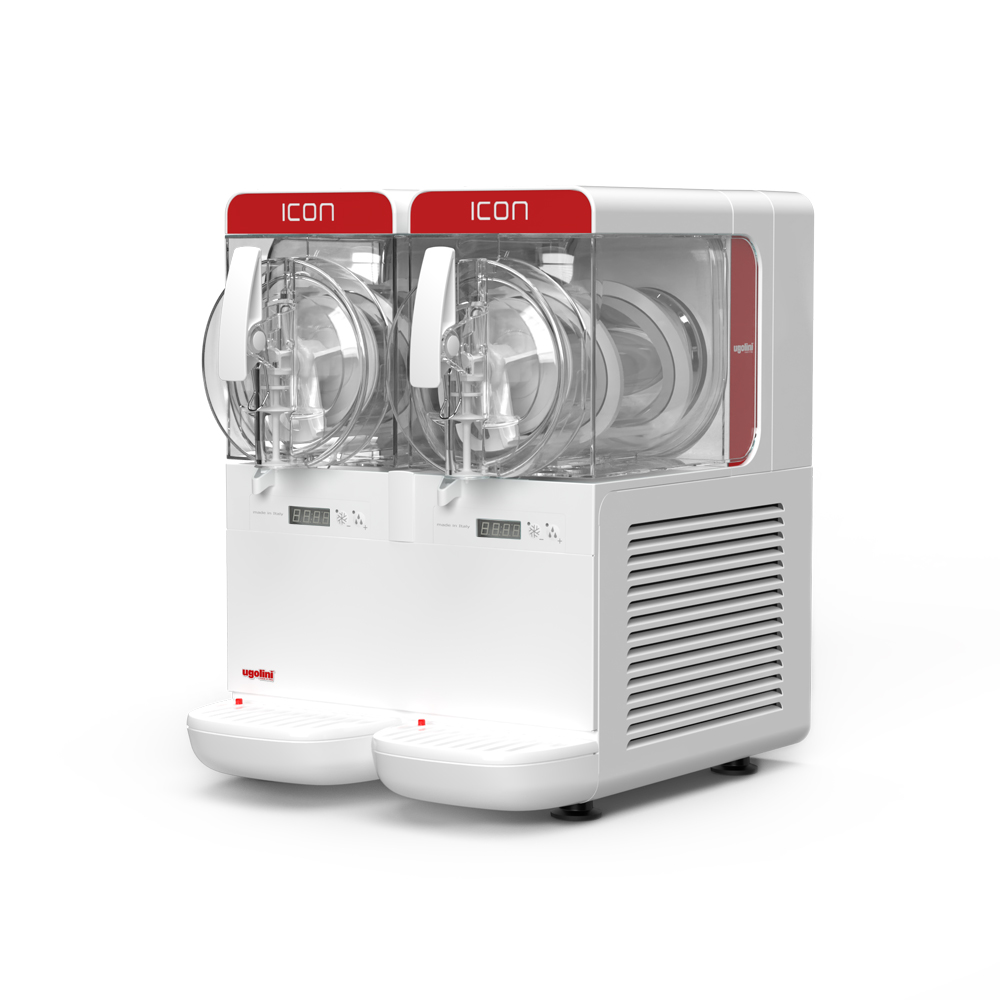Granitore 2 vasche. La nuovissima ICON dal carattere eclettico e dallo stile elegante è progettata in modo da poter accogliere la vostra grafica in maniera naturale ed armoniosa, creando così un prodotto unico che si farà notare donando ancora più forza al vostro marchio ed al vostro business. Nella versione con Recover, la ICON potrà essere arricchita con un pannello grafico che renderà il contenitore parzialmente “no-visual”. Lo stile unico e moderno unito alle sue dimensioni estremamente ridotte rendono possibile il suo inserimento in qualsiasi ambiente. Ottima per la preparazione di creme fredde, sorbetti e granite, è progettata con un contenitore da 2.8 litri che permette di gestire piccole quantità di prodotto evitando inutili sprechi.