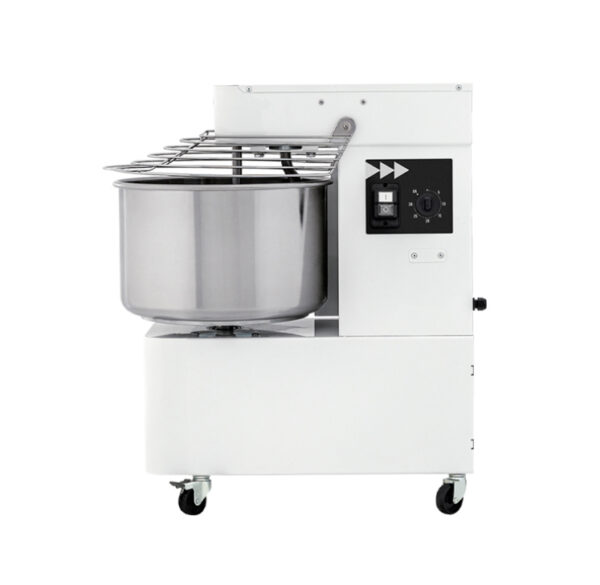 L’impastatrice a spirale Prismafood è la macchina ideale per pizzerie, panetterie e famiglie. La speciale forma della spirale consente di ottenere impasti perfettamente amalgamati in pochi minuti. La vasca, la spirale, il piantone centrale e la griglia di protezione sono in acciaio inox. Il sistema di trasmissione è realizzato con motoriduttore a bagno d’olio. Tutte le macchine hanno in dotazione lo spaccapasta. Le impastatrici possono essere dotate di motore monofase o motore trifase (serie IBT).