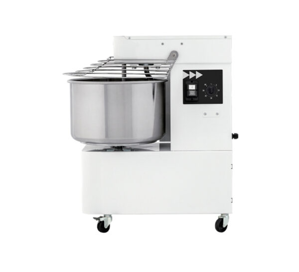 L’impastatrice a spirale Prismafood è la macchina ideale per pizzerie, pasticcerie, panetterie e famiglie. La speciale forma della spirale consente di ottenere impasti perfettamente amalgamati in pochi minuti. La vasca, la spirale, il piantone centrale e la griglia di protezione sono in acciaio inox. Il sistema di trasmissione è realizzato con motoriduttore a bagno d’olio. Tutte le macchine hanno in dotazione lo spaccapasta. Le impastatrici possono essere dotate di motore monofase o motore trifase (serie IBT).